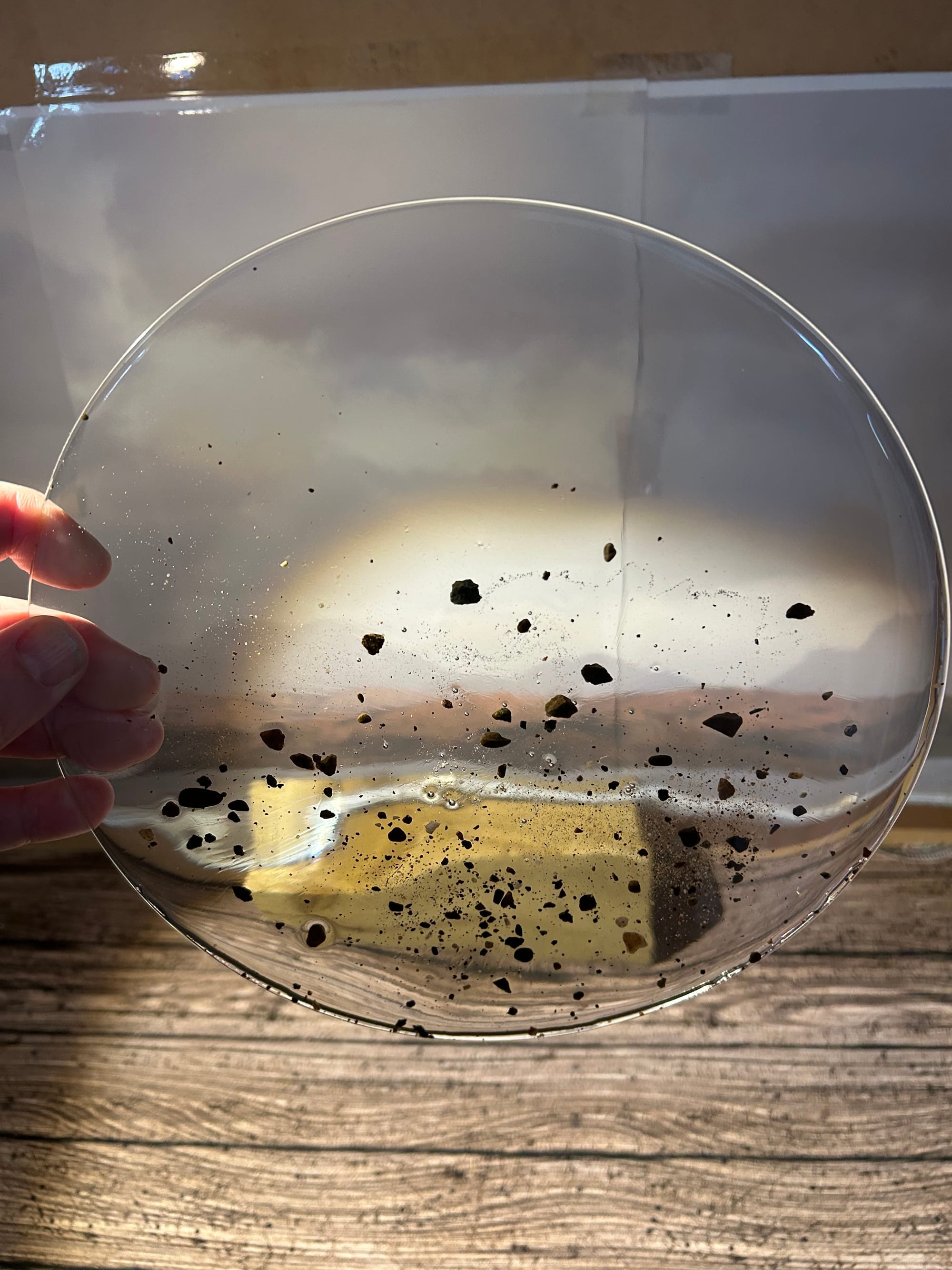 I spent a bit longer mixing the resin for this one, and doing it slower to reduce bubbles. I also got a more accurate mix of hardener to whatever-the-other-part-is-called, for a faster, harder result - but I do think the better curing time meant some more bubbles, despite my mixing care. However! I am not too worried about this, because through the camera lens they all add to the effect.